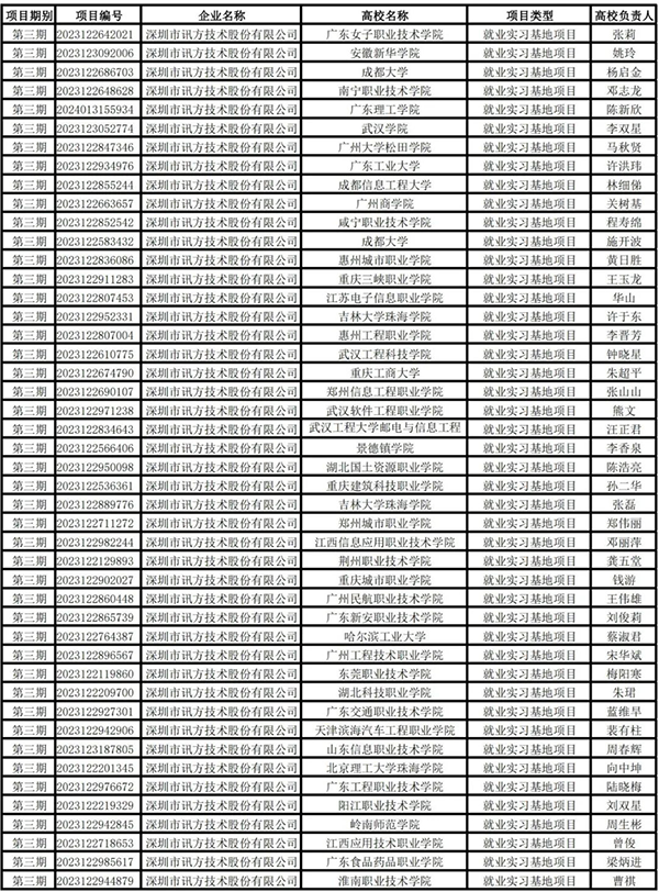 6月14日,教育部高校学生司公布第三期供需对接就业育人项目立项名单。深圳市bbin宝盈集团官网技术股份有限公司作为供需对接就业育人项目入选企业,与104所高校合作立项136项。其中定向人才培养项目37项,就业实习基地项目69项,人力资源提升项目25项,重点领域校企合作项目5项。
